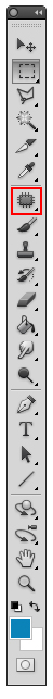 Her ses værktøjslinjen i Photoshop, og Patch Tool er markeret med en rød firkant
